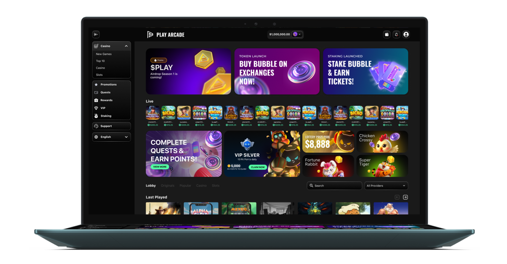 Fast-paced "Crash" and "Mine" games built for the modern, high-frequency player.